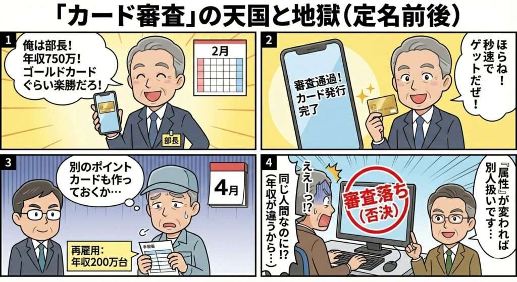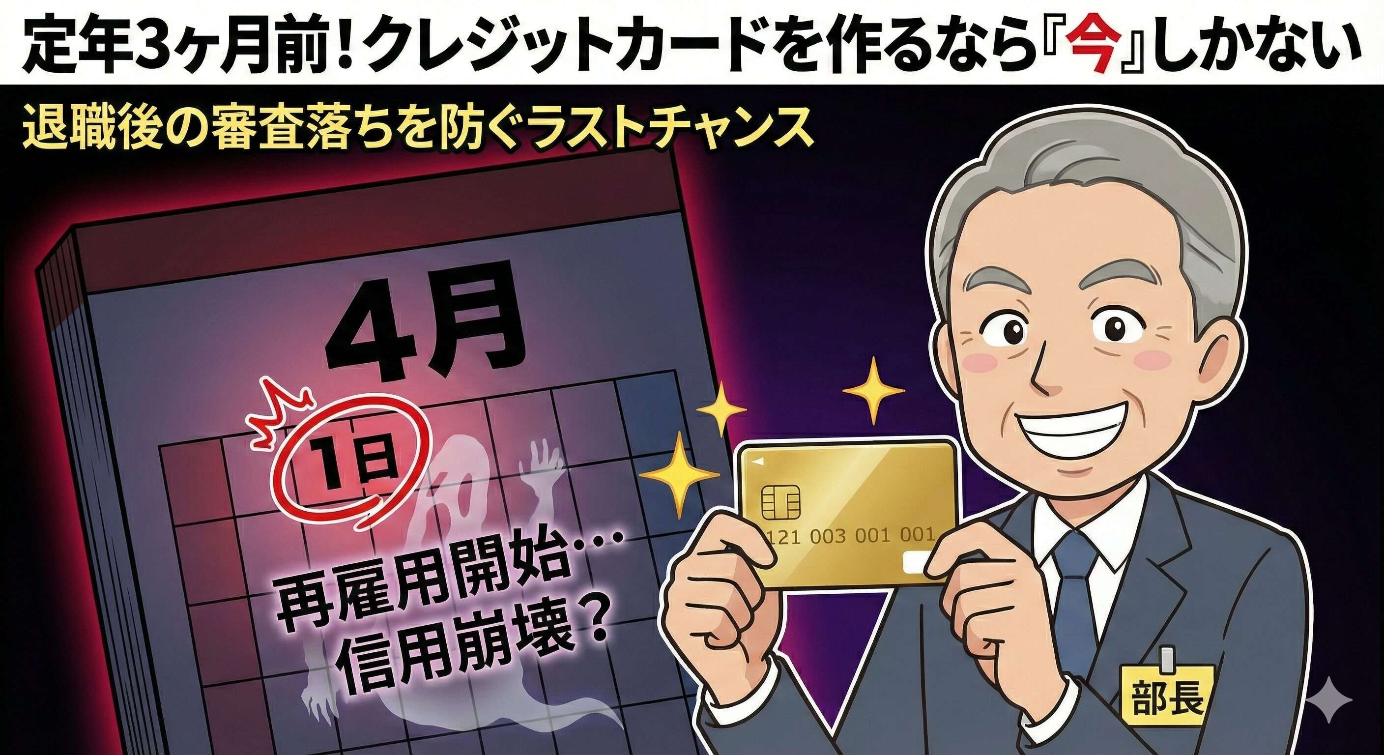 あと3ヶ月。 2026年4月になり、私が「再雇用(嘱託社員)」になった瞬間、この社会的信用は崩壊します。 FPとして断言します。クレジットカードを作るなら、絶対に「現役」の今しかありません。
